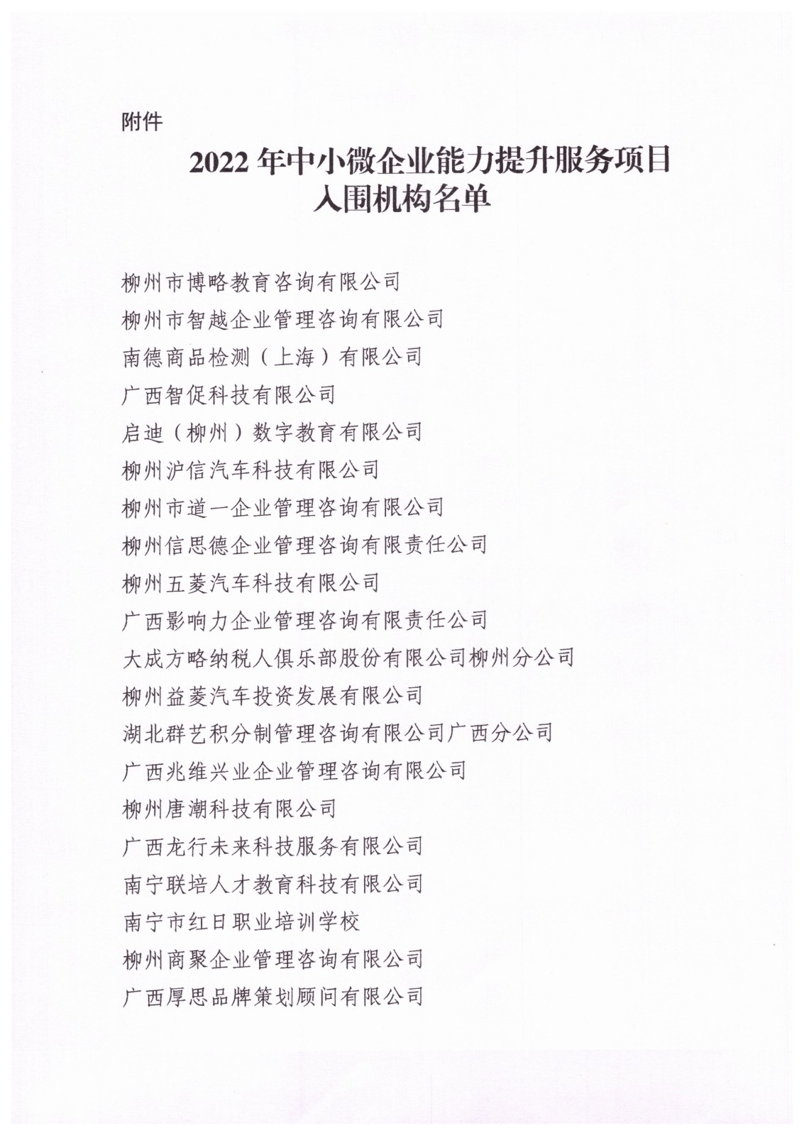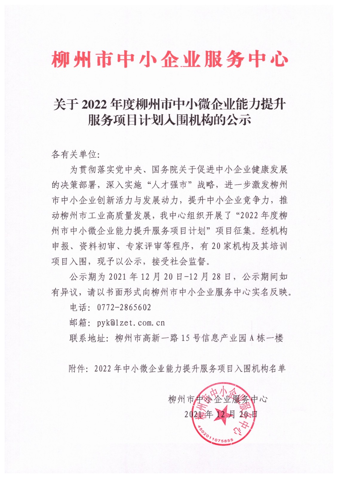 2022年度柳州市中小微企业能力提升服务项目计划入围机构的公示